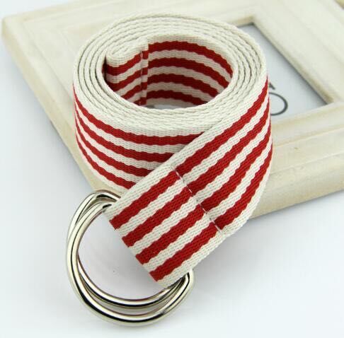 - 送料無料★即納 新品 男女兼用 ルーズ ストライプ ロングベルト ベルト カジュアル★赤白細ボーダー