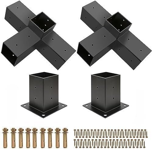 - パーゴラキット ブラケット付き 3ウェイ直角コーナーブラケット 木工DIYポストベースキット 屋外パーゴラハードウェア 4x4木材用 (4点)