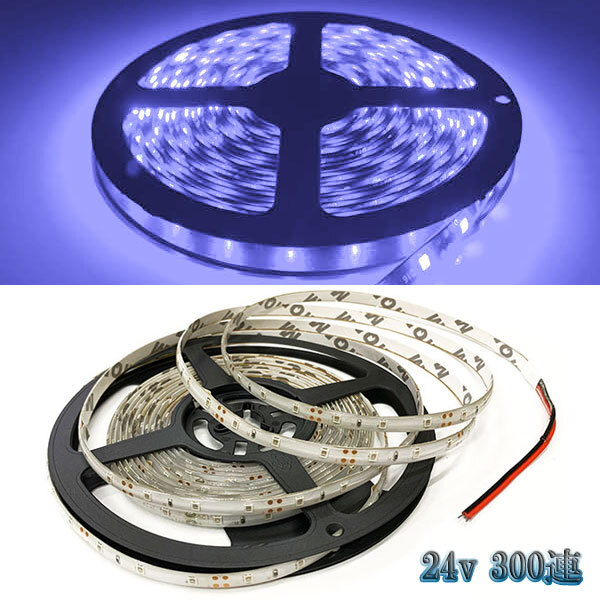 > LEDテープライト 間接照明 車 電源 24V 5M 300連 防水 白地 ホワイト 正面発光 送料無料