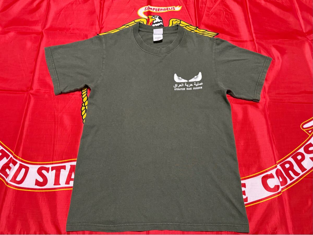 > 中古美品 USMC MACS-2 DETACHMENT ALPHA OPERATION IRAQI FREEDOM, 2008 コットンTシャツ OO-RAH製 SMALL OD