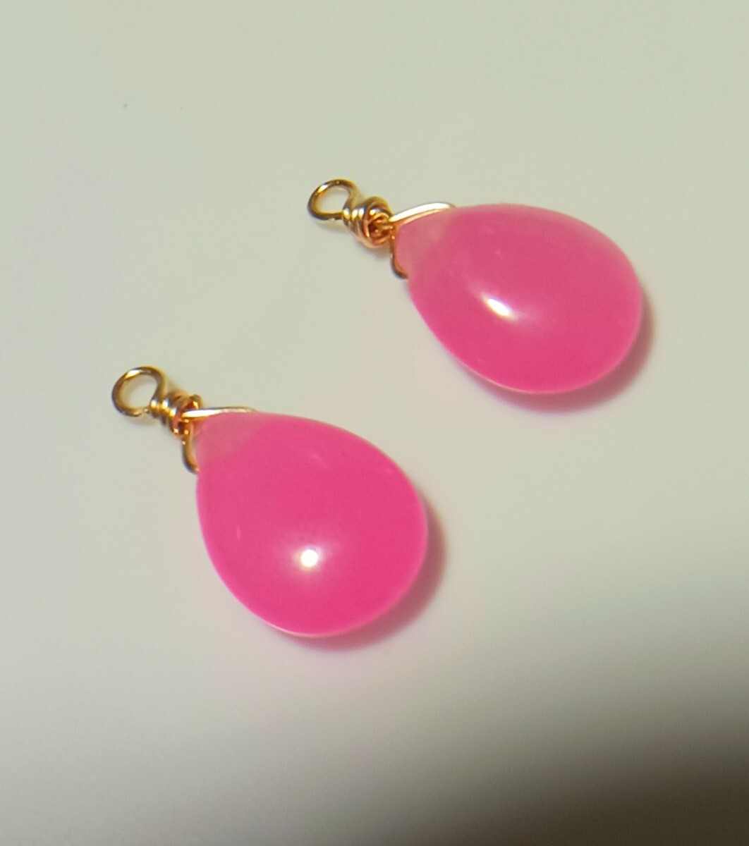 > ピンククォーツァイト&金色ワイヤーのパーツ 2個 天然石/ピアス,ペンダント,アクセサリー,ストラップ,チャーム/ドロップ型