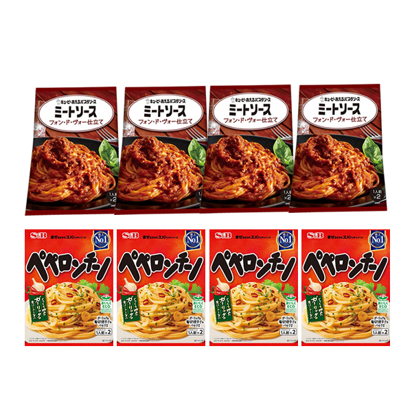 - ■キューピー ミートソース(フォンドボー)・エスビー ペペロンチーノ 2種8袋(16食)■