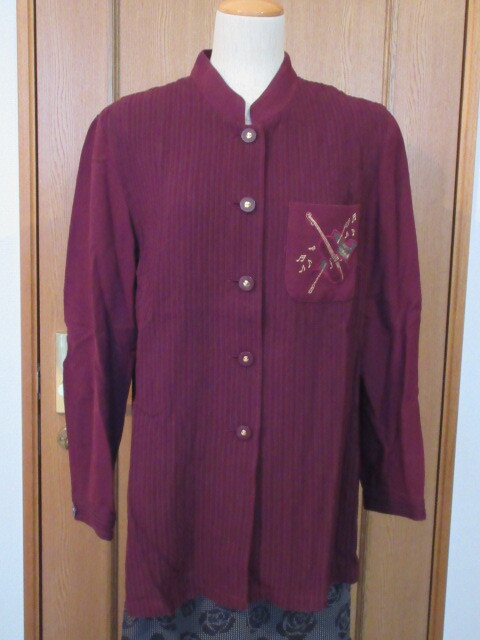 - P)■日本製ランド品■【レリアン Leilian】■ピンタック風ニット/テンセルレーヨン■胸ポケットにバイオリンの刺繍!■シャツ/ジャケット
