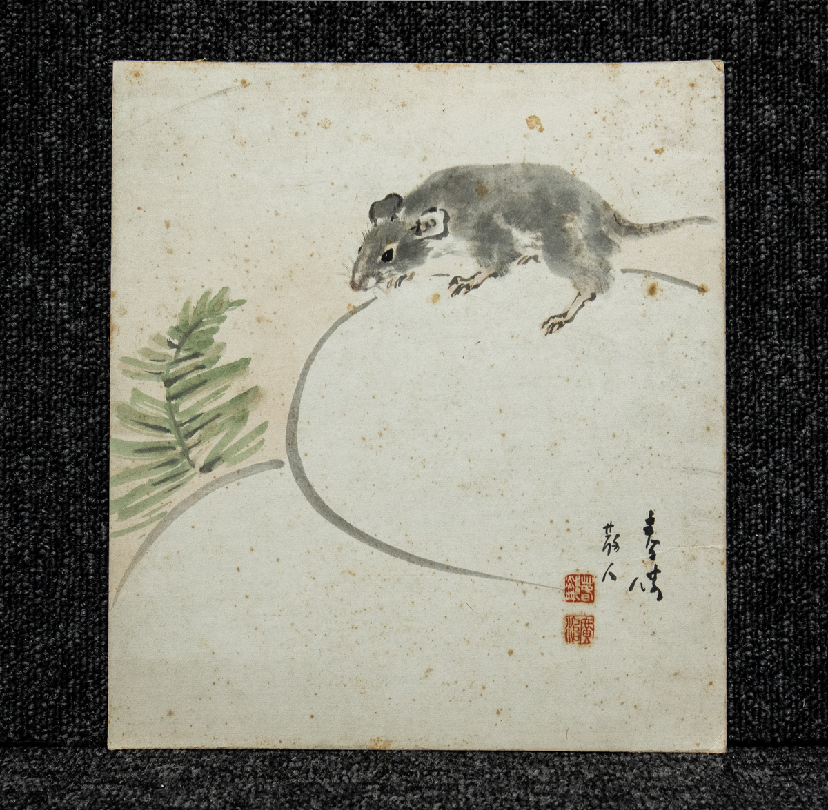 - 色紙ー1758 鷲見春鄰 鼠 四条派の画家 名古屋 鷲見春岳の三男 名は広治【真作】