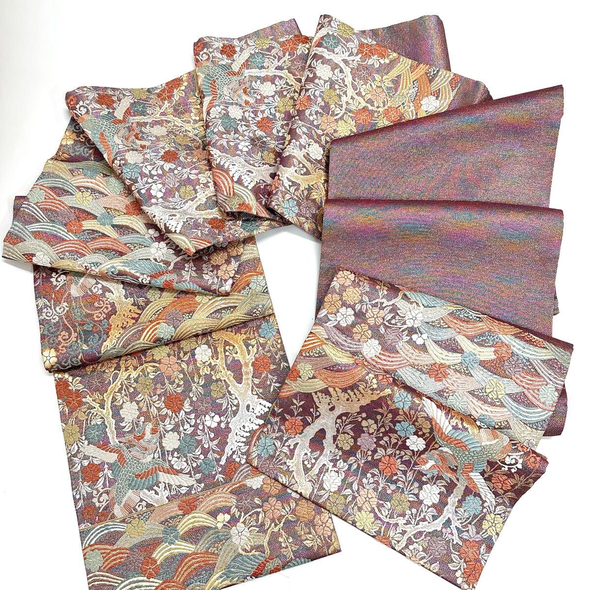 - 【七福】c529 逸品 高級品 正絹 袋帯 六通 鳳凰 青海波 金糸 銀糸 銀彩 刺繍 豪華