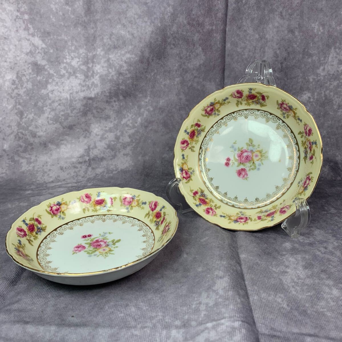 - 明治大正期 オールドニッポン GOLD castle 金彩 アンティーク 輸出用 里帰り 美術品 プレート 深皿 食器 金彩 花柄 バラ ローズ ペア