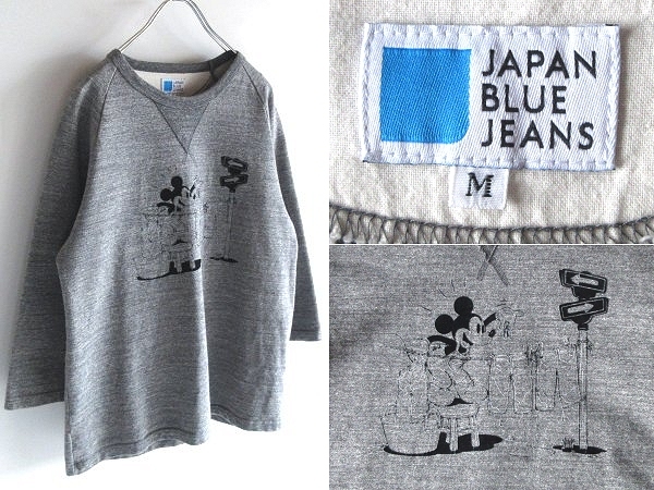 - 未使用 JAPAN BLUE JEANS ジャパンブルージーンズ Disney ミッキーマウスプリント ヘビー天竺 ラグラン カットソー スウェット M 杢グレー
