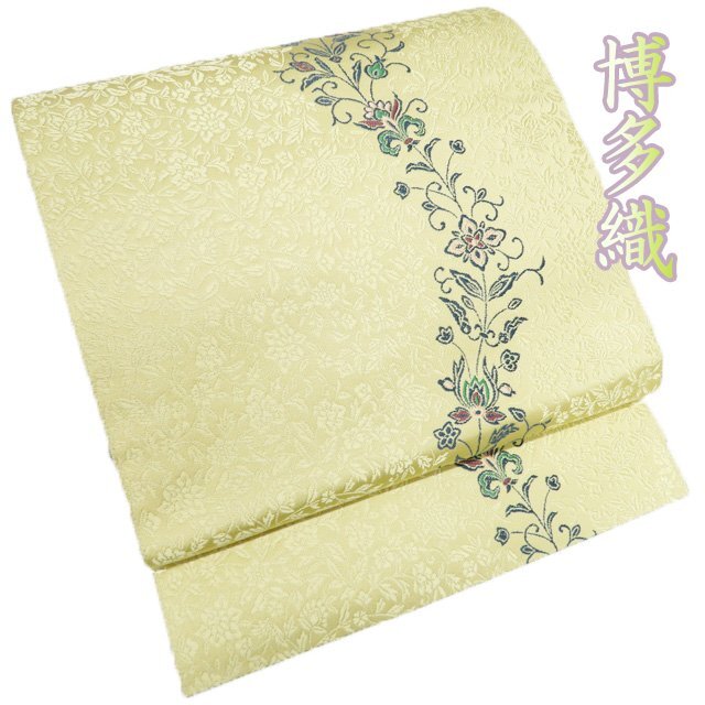 - 特選 名古屋帯 なごや帯 中古 リサイクル 正絹 カジュアル 仕立て上がり 博多織 ラベル付き 花模様 承和色 多色 きもの北條 A1188-13