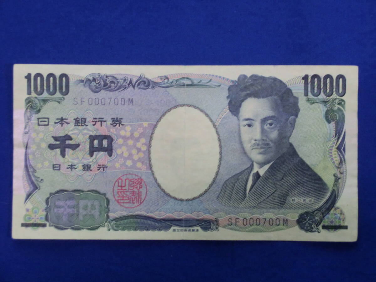 - 野口英世 1000円 旧札 SF 000700 M 千円札 珍番 折れ目あり