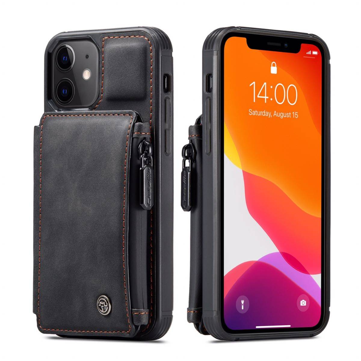 - iPhone 11 pro レザーケース iPhone11 pro カバー アイフォン11 プロ ケース 背面 ファスナーポケット付き カード収納 カバー ブラック