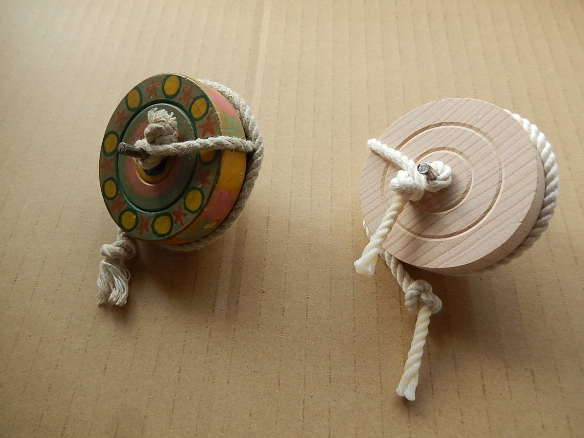 - ◎〇★鉄芯ごまA ★木製鉄芯独楽直径6cmです★投げゴマ★白生地のコマで着色できます。★知育玩具★伝承玩具★こまひも付き。