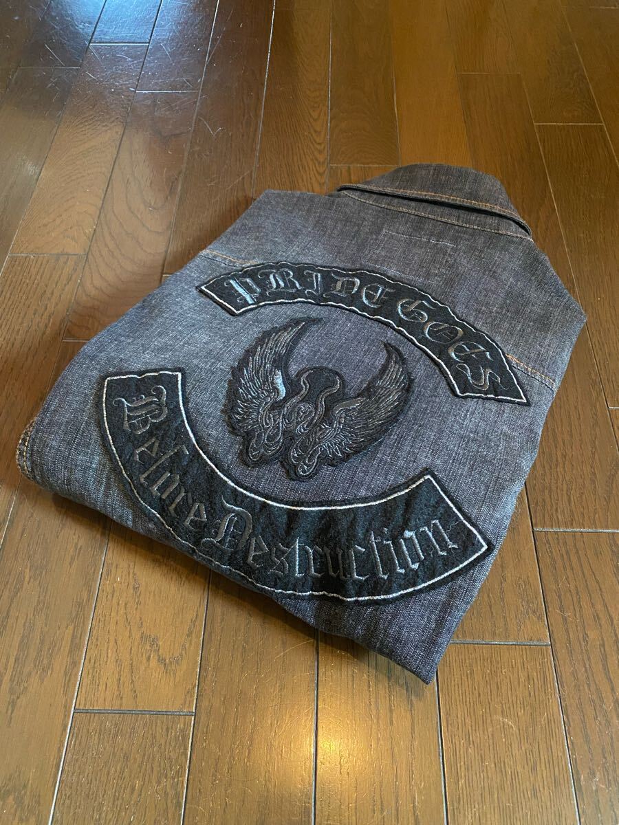 > レア美品デニムジーンズライダースシャツジャケットダンガリーカバーオールワッペンバイカーバイク乗り必見!インレイコンチョボタン