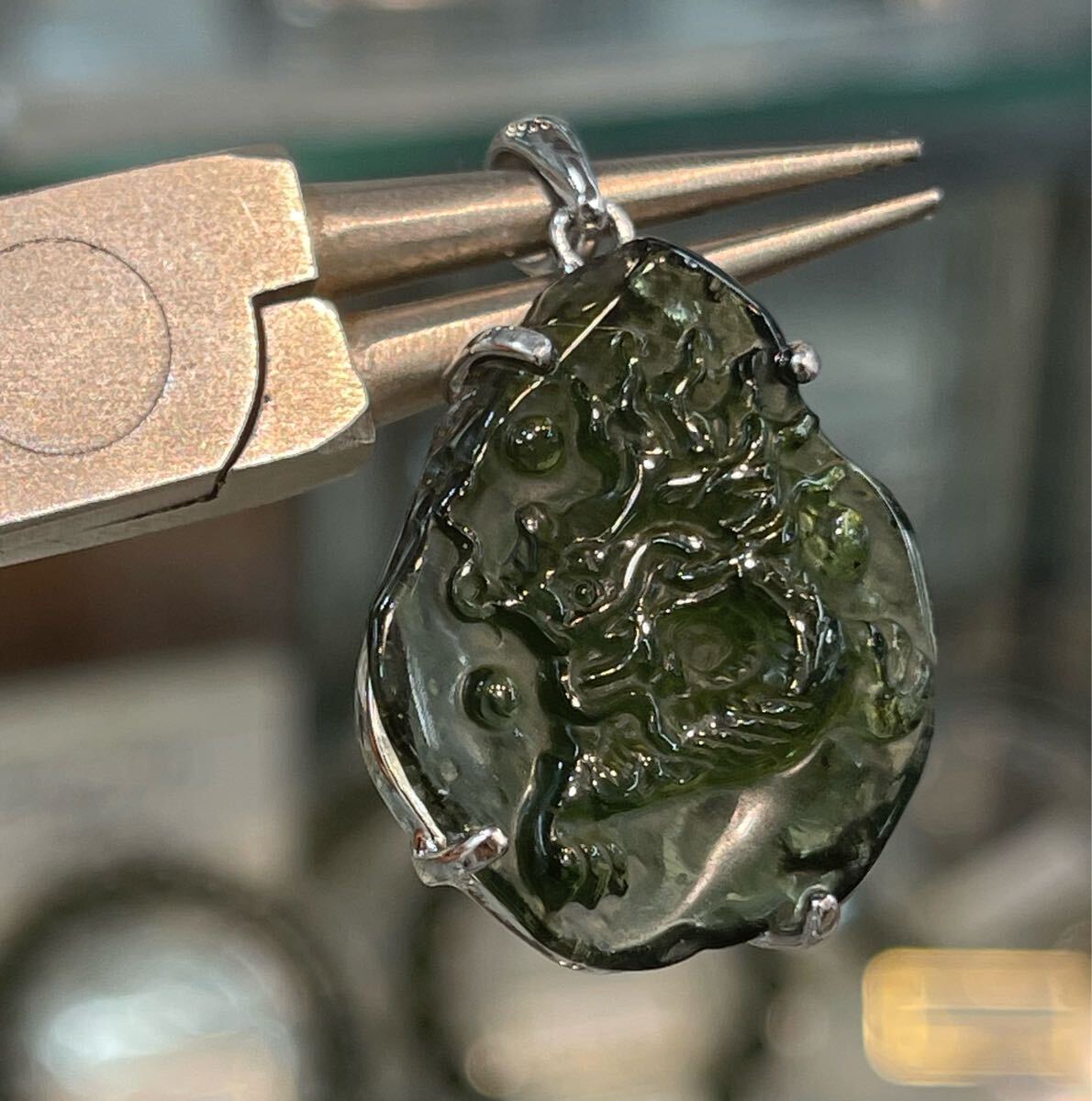 - 激レア 特選!天然モルダバイトペンダント 龍彫りペンダントトップ