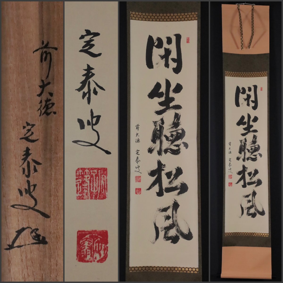 > 【模写】吉】12341 小堀定泰 書 閑坐聴松風 共箱 臨済宗 大徳寺 孤蓬庵住職 小堀遠州の末裔 滋賀県 茶掛け 茶道具 仏教 禅語 掛軸 掛け軸