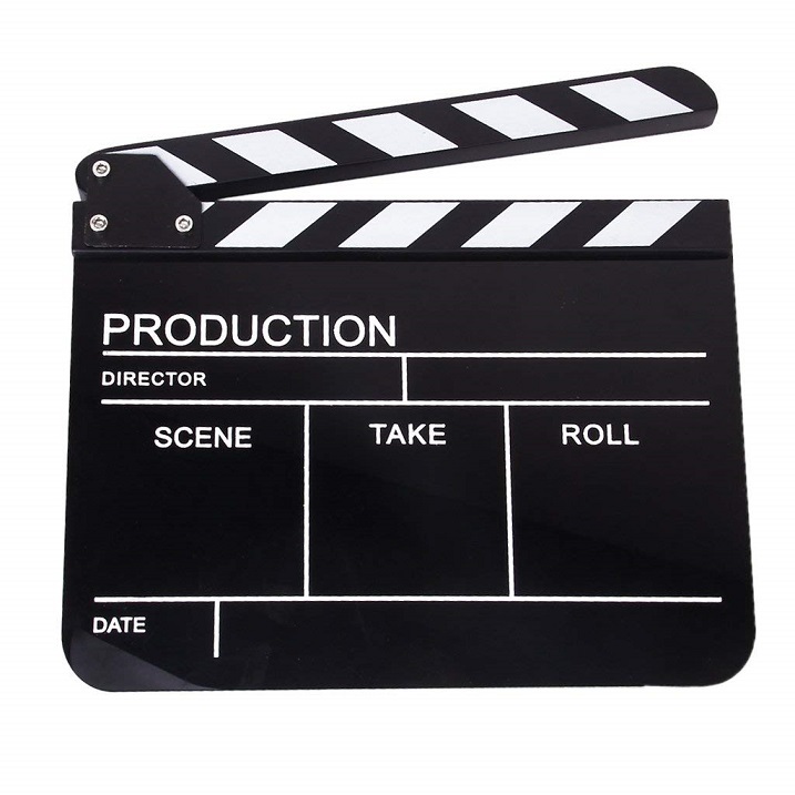 - ドラマ・映画撮影・自主制作用 アクリル カチンコ ボード (黒) 業務用 拍子木