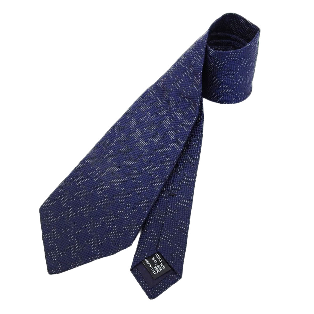 - 美品 GUCCI グッチ ネクタイ 小物 メンズ シルク ネイビー