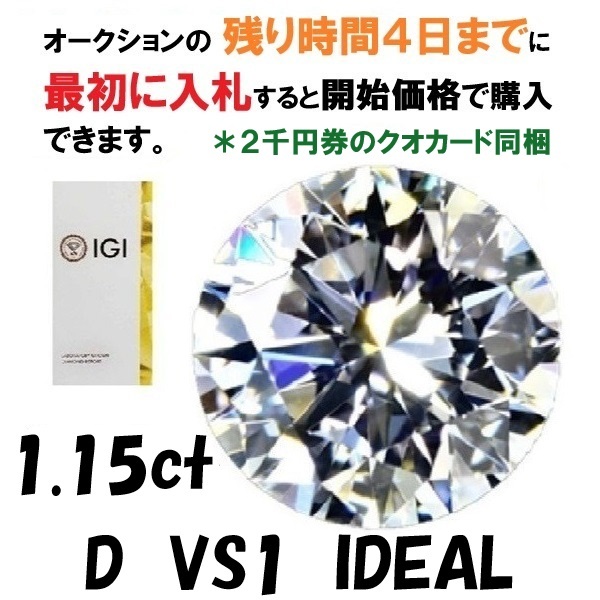 > 2千円券クオカード同梱、IGI 鑑定、1.15ct D VS1 IDEAL、ラボグロウンダイヤモンド ルース、残り時間4日までの入札が断然お得 Cf8gbc