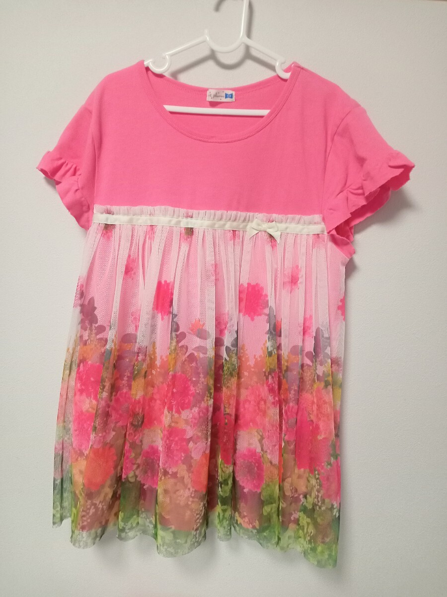 - 【美品】KP(ニットプランナー)花柄 転写 プリント 半袖Tシャツ 150