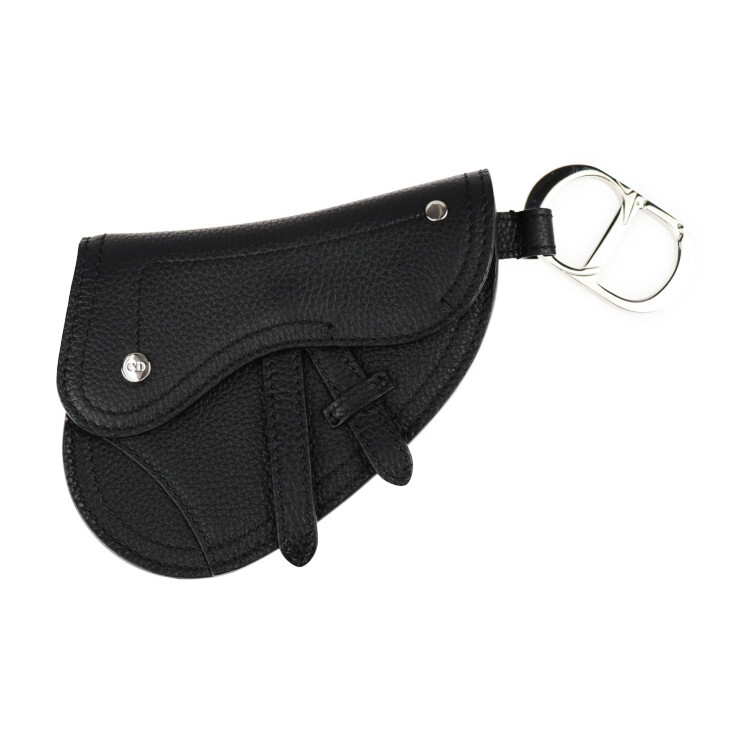 > 超美品 クリスチャンディオール サドルポーチ コインケース レザー 黒 アクセサリーポーチ キーリング バッグチャ【本物保証】