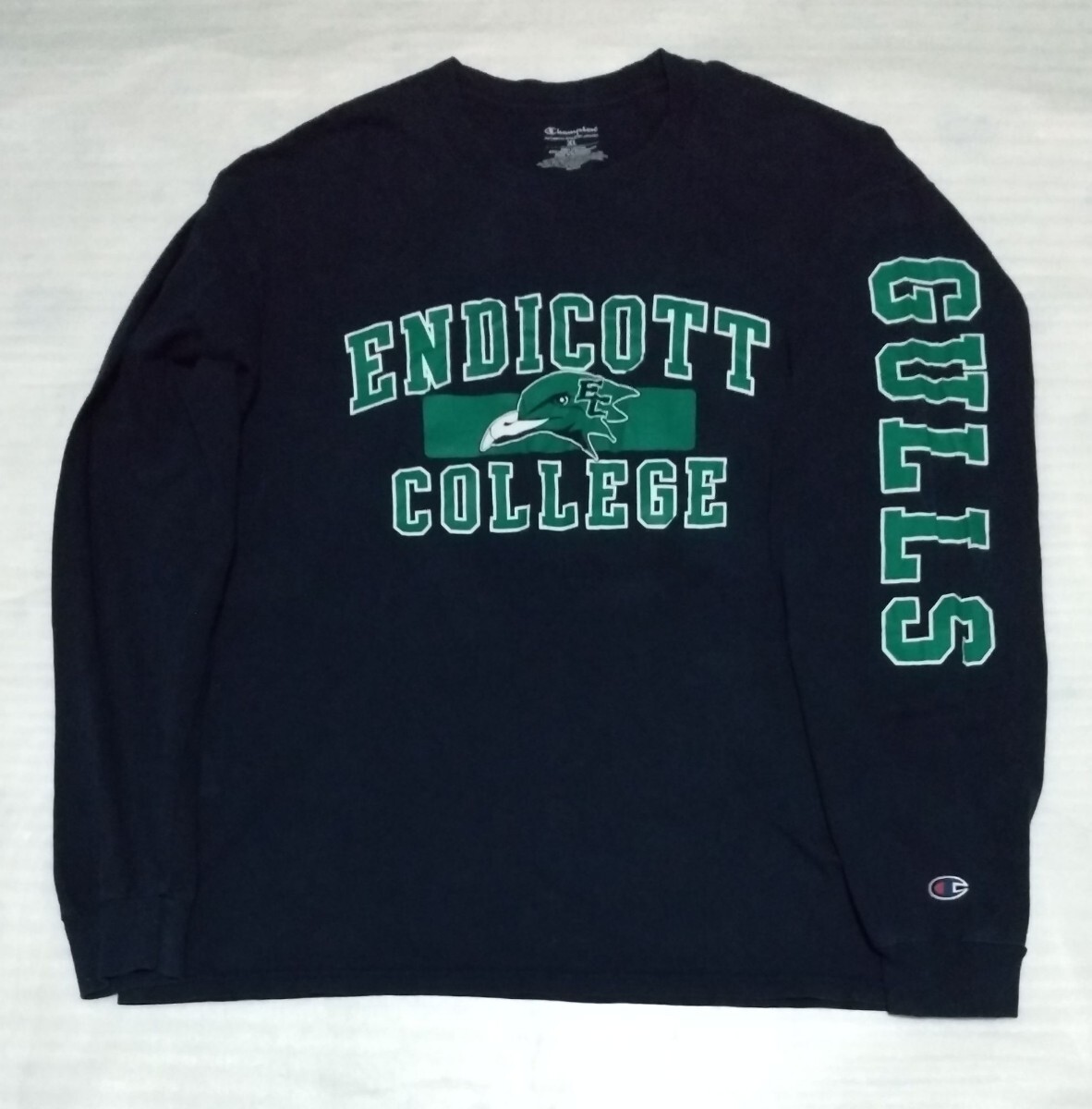 - ☆Champion.COM TEE サイズXL 長袖TシャツAUTHENTIC APPARELスポーツCOTTONファッション紺色ネイビーENDICOTT緑COLLEGEティー チャンピオン