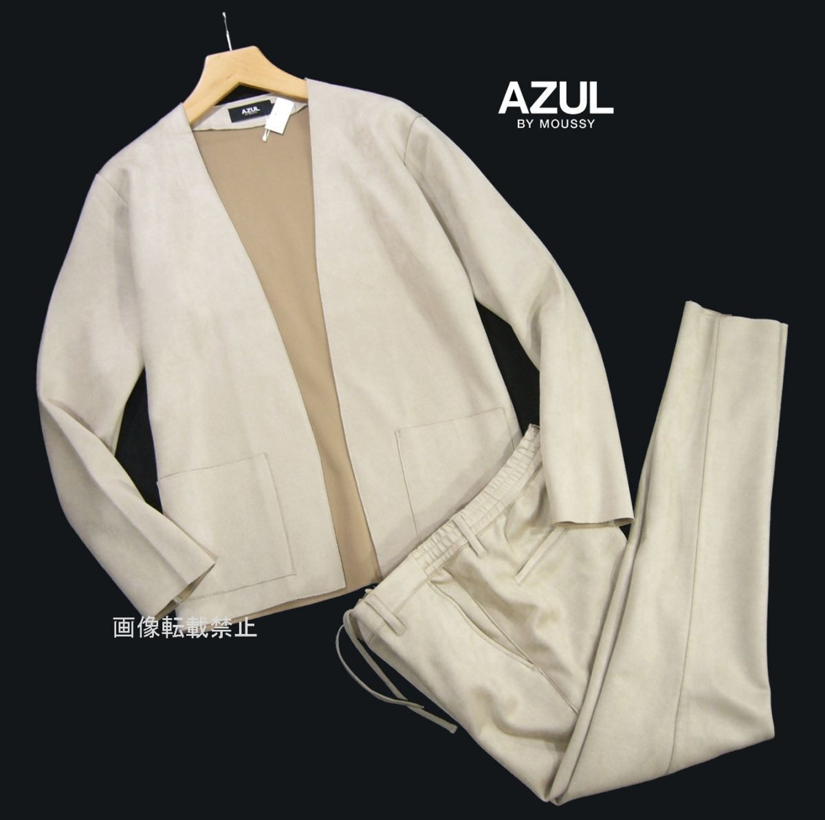 - 新品 アズールバイマウジー AZUL BY MOUSSY Fスエード ノーカラー セットアップ スーツ M ベージュ ストレッチ カーディガン