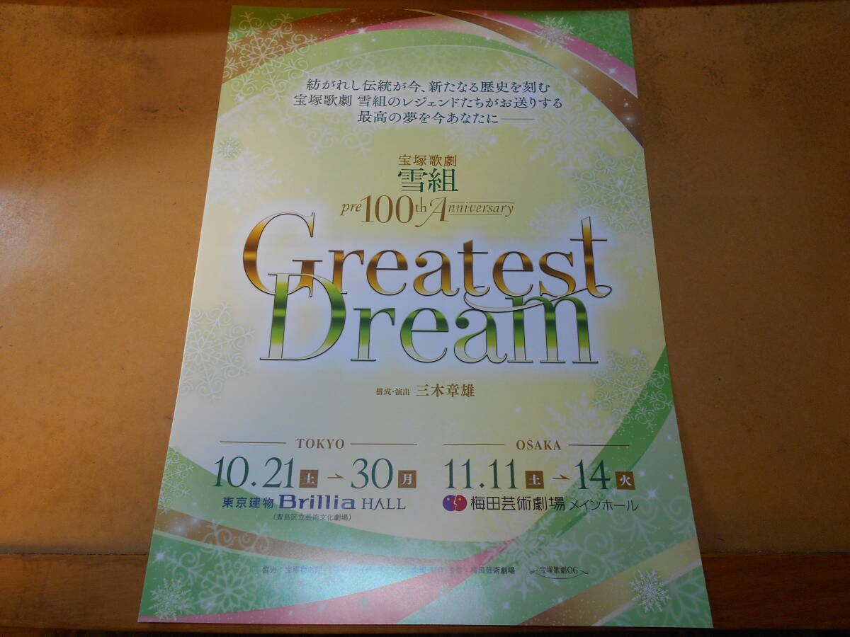 > 宝塚歌劇 雪組 pre 100th anniversary Greatest Dream 公演 チラシ 1枚 100周年記念 2023年10-11月 フライヤー 宝塚