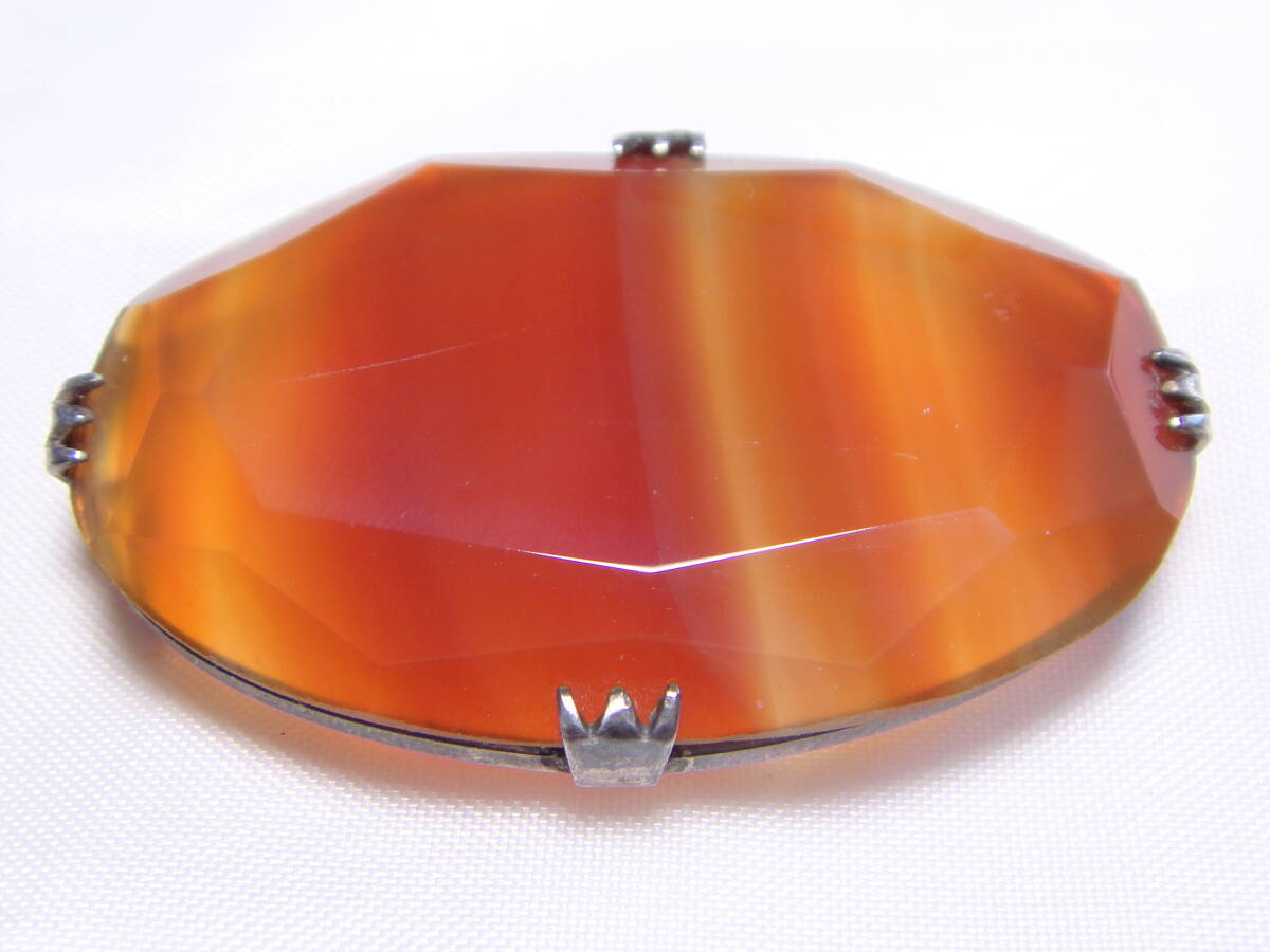 - 天然石 カーネリアン 帯留め つぶれた刻印 レトロ アンティーク ヴィンテージ Y650