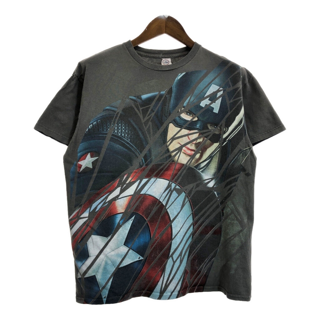 - MARVEL マーベル Captain America キャプテン・アメリカ 半袖Tシャツ ムービー キャラクター グレー(メンズ L相当)中古 古着 U2445