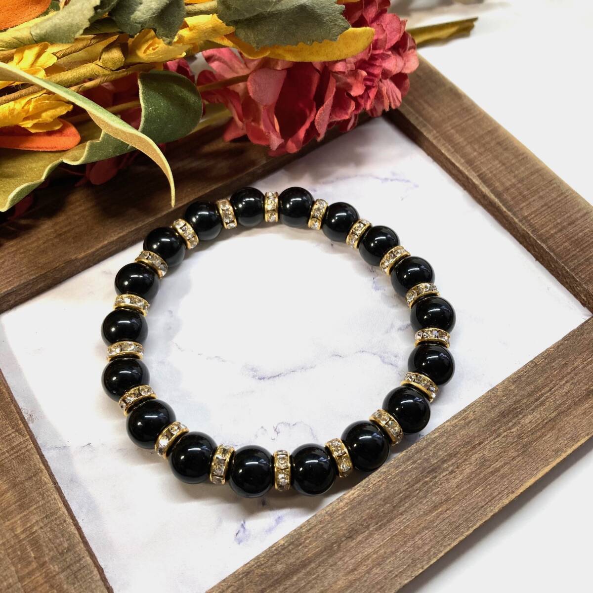 > モリオン パワーストーン ブレスレット 10mm 天然石ブレス (ゴールド) 数珠ブレス メンズ・レディース 男性 女性 幸運 開運 ☆