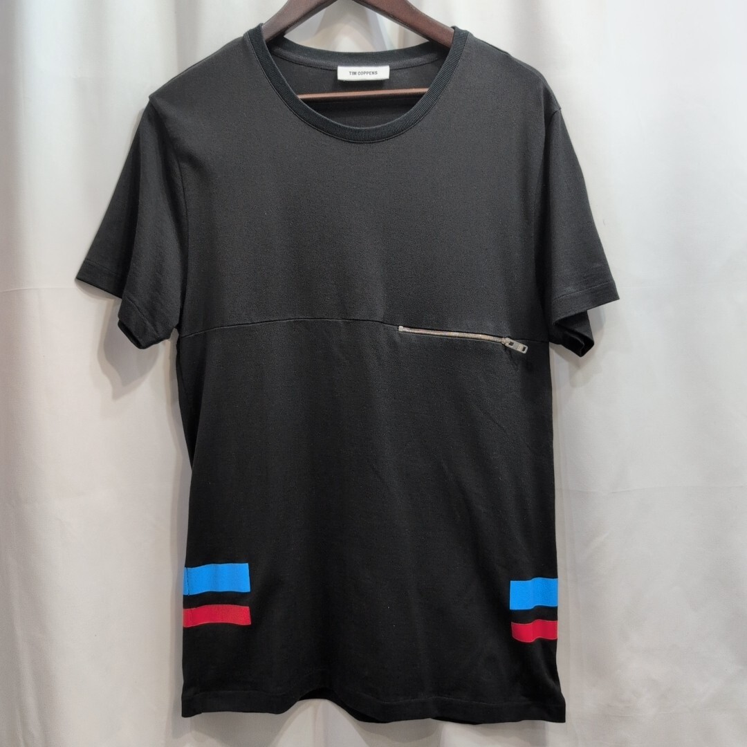 > ほぼ未使用 TIM COPPENS ティムコペンズ ジップポケットTシャツ M メンズ riri zip ファスナー 黒 ブラック コットン