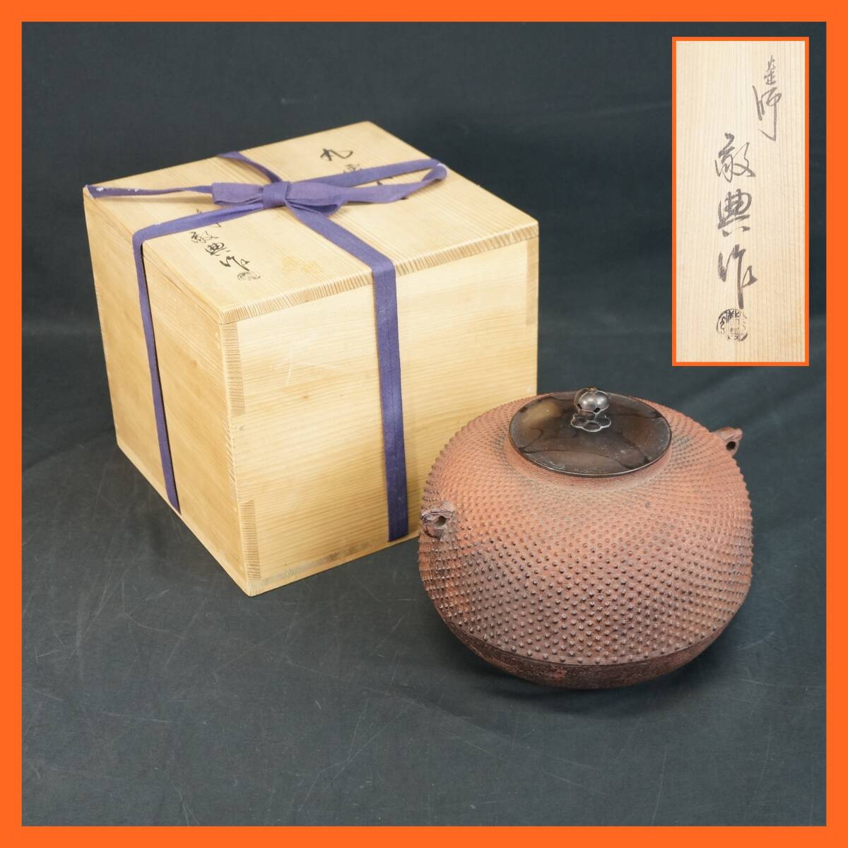 - 東ハ:【茶道具】人間国宝 釜師 高橋敬典造 丸霰釜 共箱付 霰肌 茶の湯釜 鉄釜 鉄器 煎茶道具 金属工芸 ★送料無料★