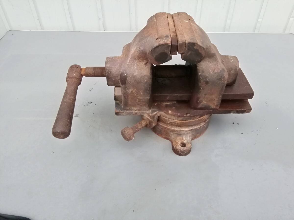 - レトロ 万力 回転式 リードバイス バイス クランプ 口幅10cm 3点固定 重量約15kg 現状渡し品