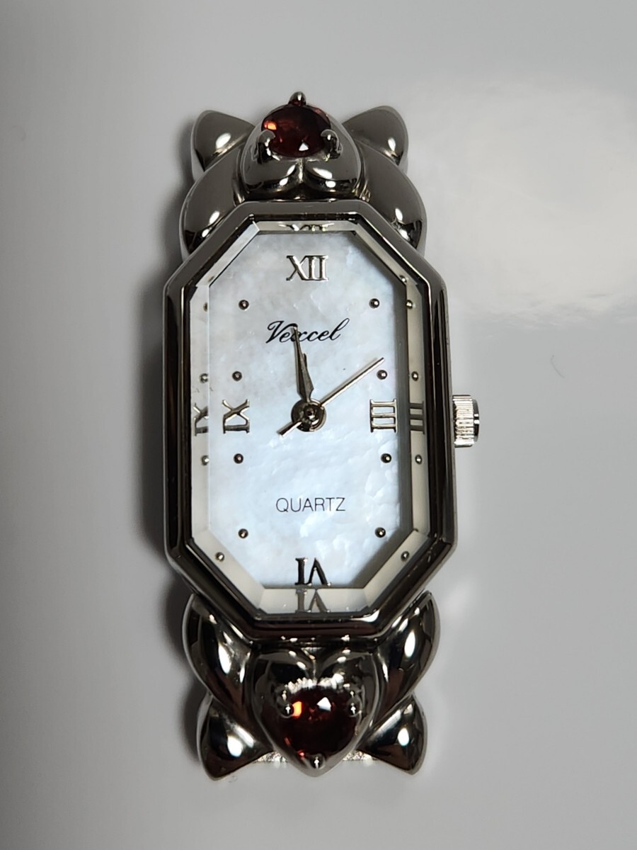 - ▼新品未使用/ VEXCEL レディース 腕時計 ウォッチ トップ カラー銀 ヴェクセル ジュエリー ガーネット クォーツ シェル文字盤