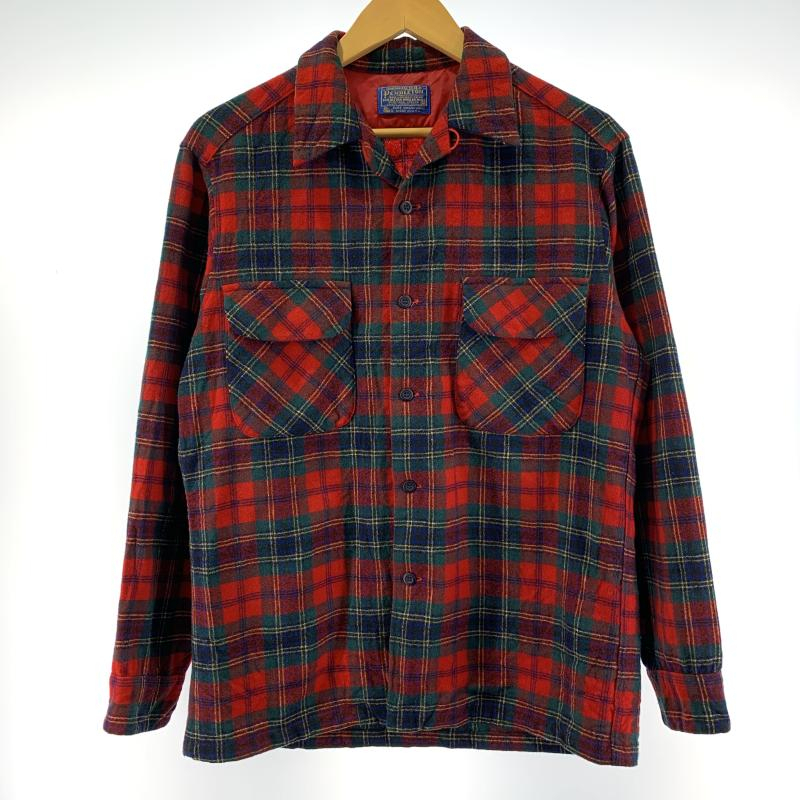 > 【中古】70s PENDLETON ウールチェックシャツ サイズM レッド ペンドルトン タータンチェック[240019494770]