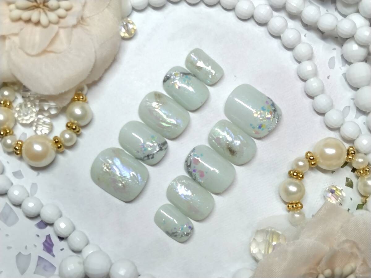 - 即決☆ジェル加工済ネイルチップ☆ベリーショートM オーロラ パステルブルー