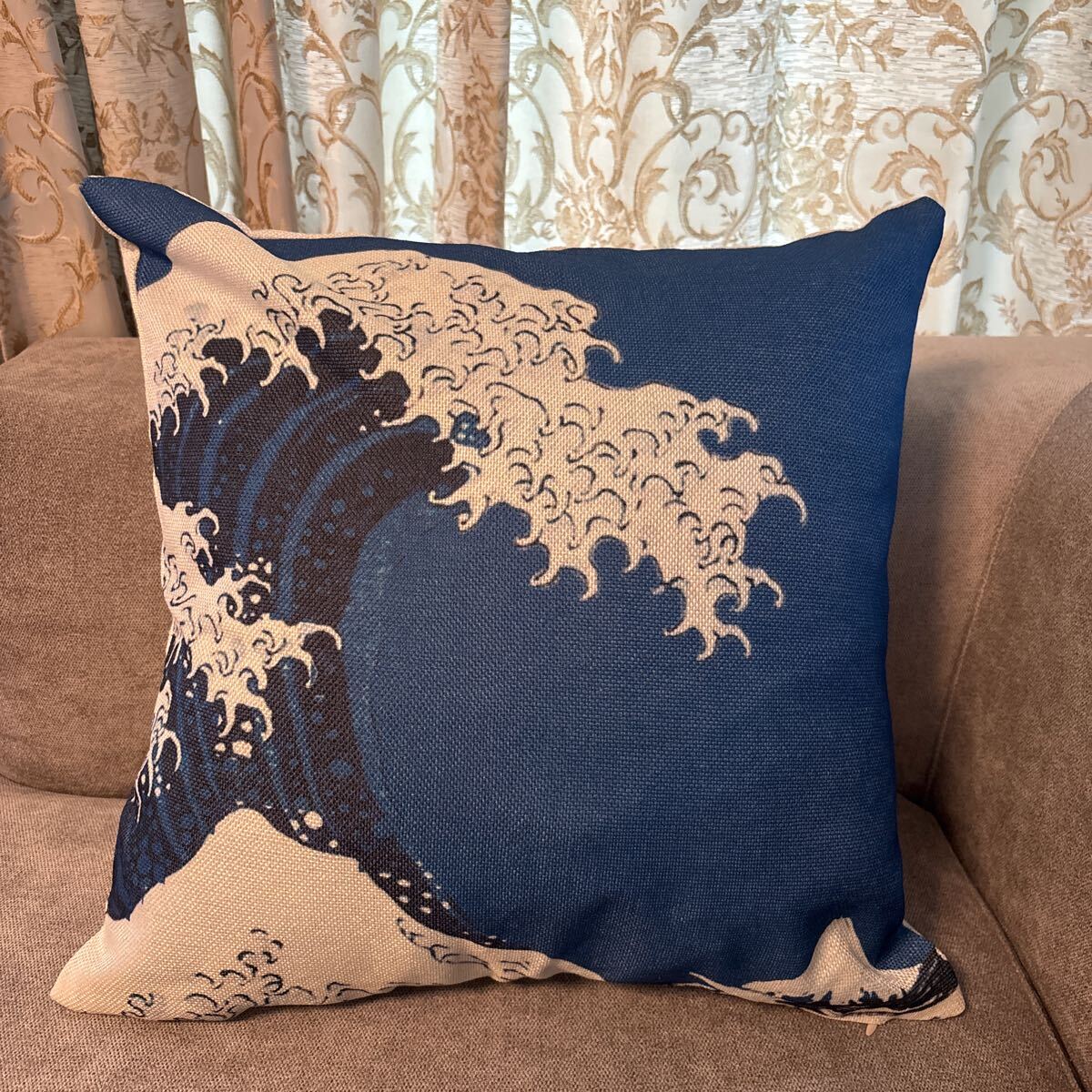 - 1枚 神奈川沖浪裏 クッションカバー 北斎 葛飾北斎 浮世絵 送料無料 新品 クッションカバー リネン