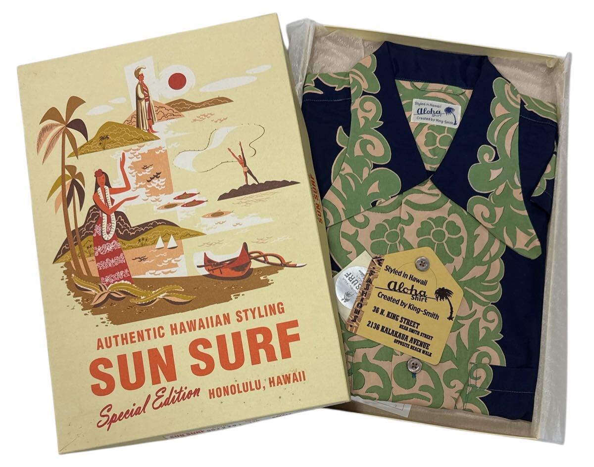 - 未着用 ▲ 東洋 SUN SURF サンサーフ ▲ スペシャルエディション SS32291 パレオ デザイン柄 開襟 カラー レーヨン アロハ シャツ S