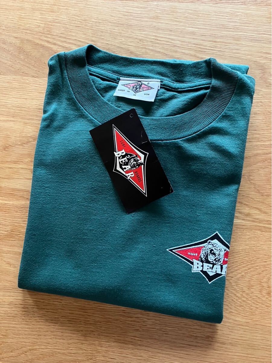 > 90s BEAR SURFBOADS ベアサーフボード 半袖Tシャツ ダークグリーン 100%COTTON Mサイズ MADE IN USA デッドストック(ワンウォッシュ)