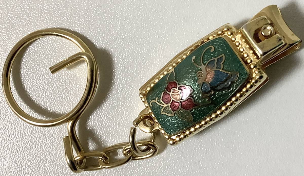 - 新品!七宝焼 携帯用 爪切り キーリング付*花と蝶♪送140