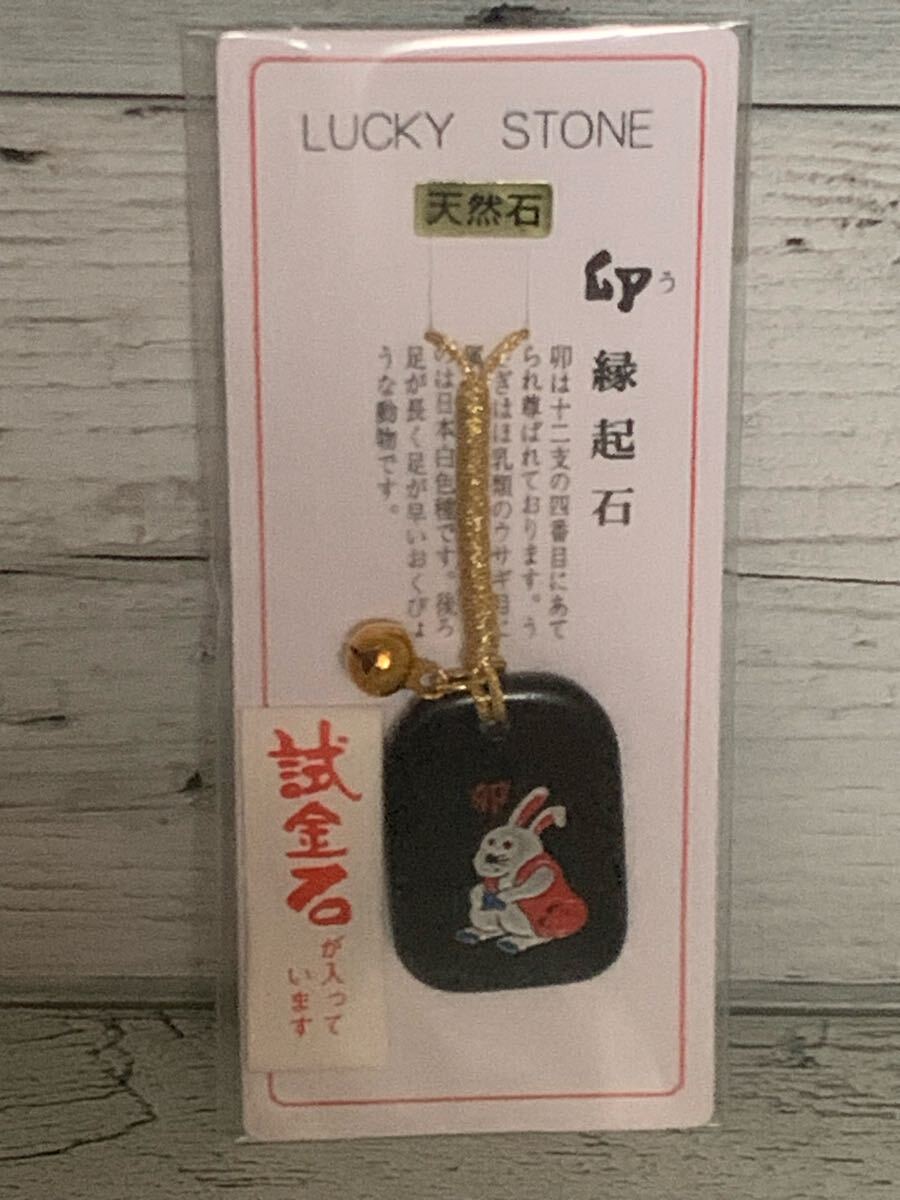 - 干支 卯(うさぎ)縁起石 試金石入り 天然石 彫刻 お守り 厄除け 鈴 根付 ストラップ 縁起物 ラッキーストーン 魔除け 開運