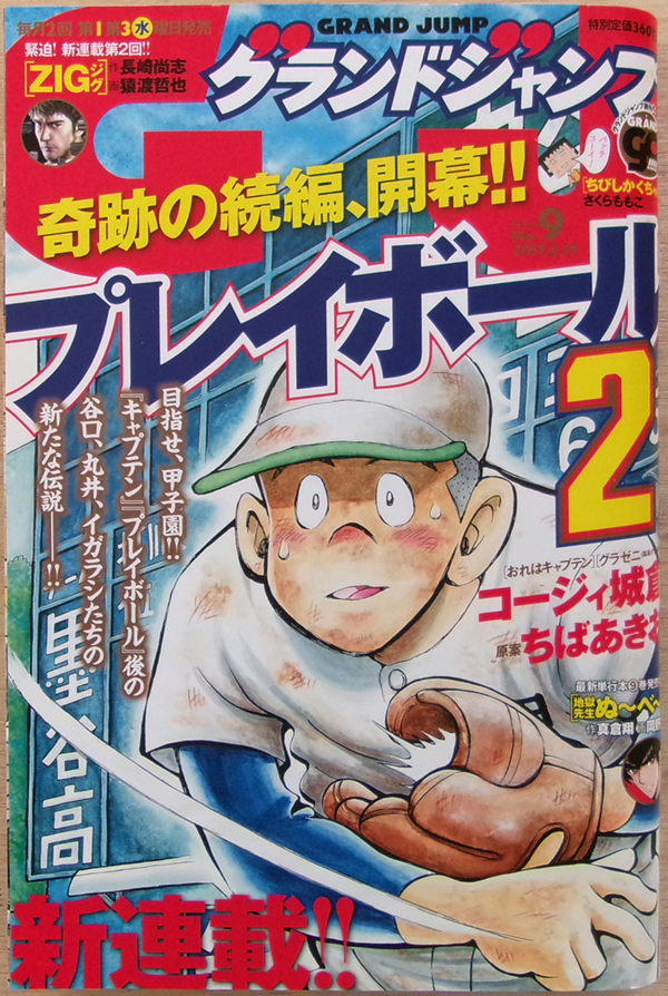 - □ グランドジャンプ 2017.4.19 No.9/ 新連載巻頭カラー[プレイボール2]コージィ城倉 原案・ちばあきお/ 猿渡哲也 岡野剛 山口譲司