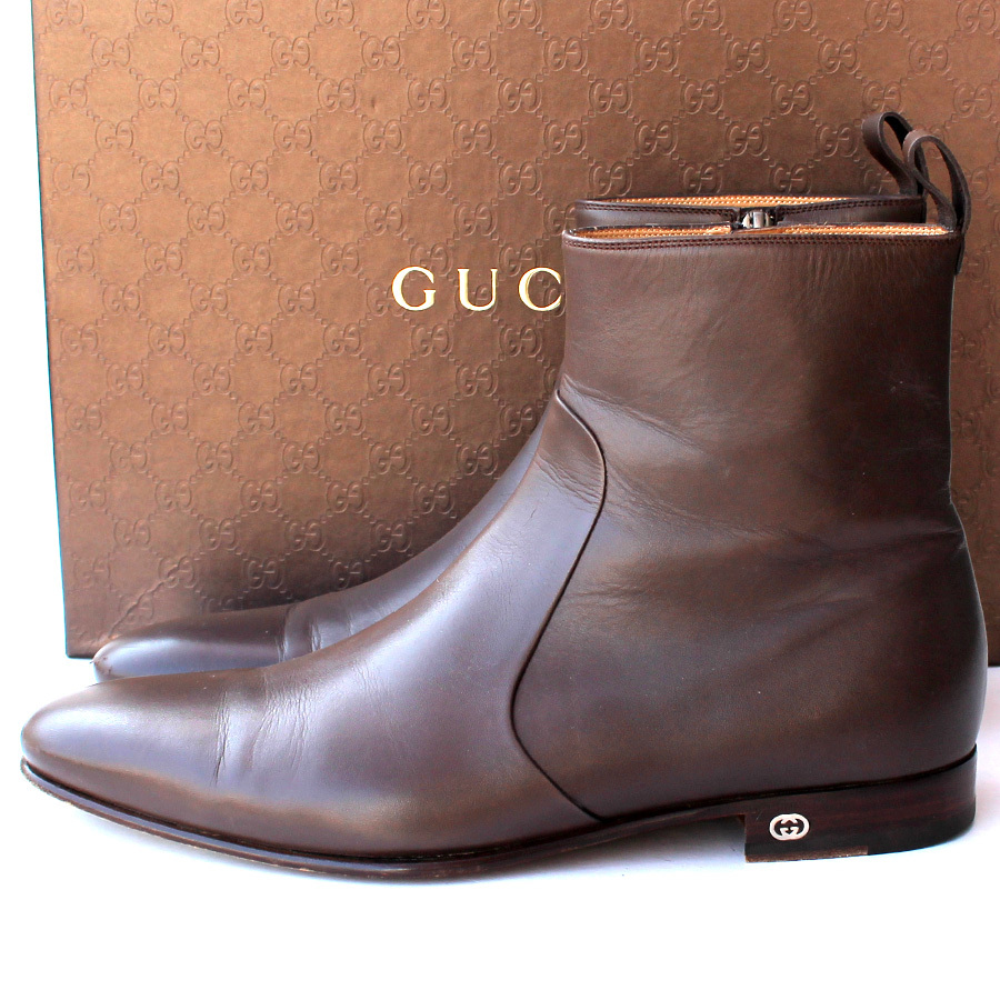 > イタリア製★GUCCI グッチ★サイドジップブーツ 8=27 322480 ブラウン メンズ レザー p i-1403