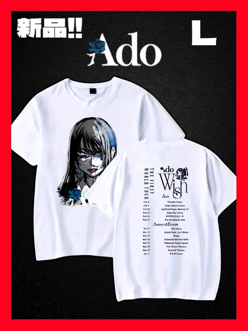 - ★新品!◆送料無料!◆Ado,アド*ウィッシュツアー2024*グラフィックプリント*半袖Tシャツ*Lサイズ*白*綿100%*音楽,バンド,スポーツ.