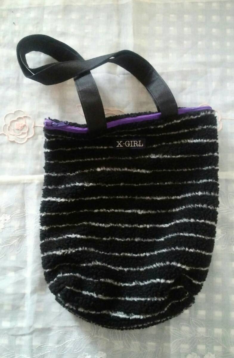- X-GIRL エックスガール トートバッグ あったか素材 ファスナー式 内側 紫色