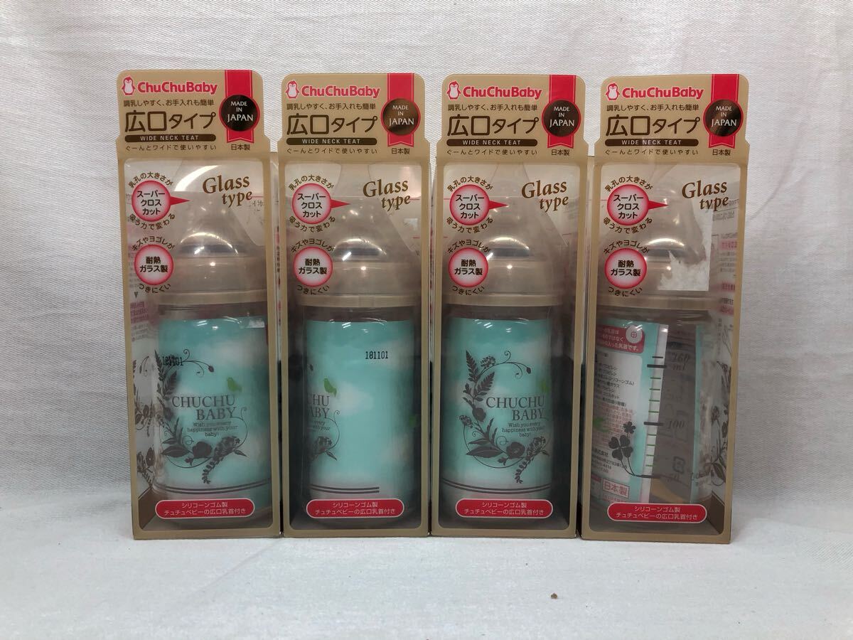 - ★ チュチュベビー 哺乳瓶 広口タイプ ガラスタイプ スーパークロスカット 4個セット①
