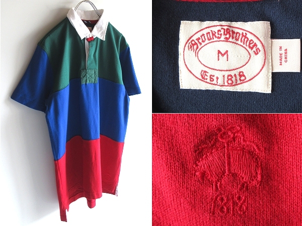 > ネコポス対応 Brooks Brothers ブルックスブラザーズ 羊ロゴ刺繍 パネル切替 ラガーシャツ ポロシャツ M レッド ブルー グリーン 国内正規