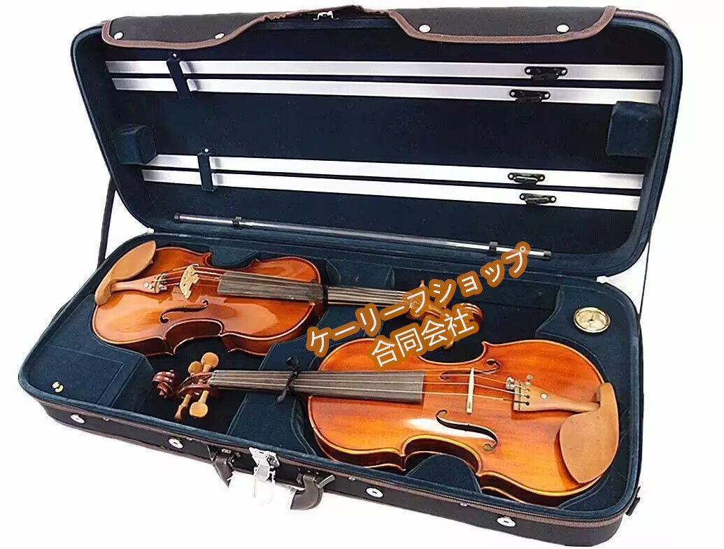 - 【木製ダブルケース】4/4サイズバイオリン2台収納可能 高級琴箱(弓4本収納/防衝撃設計)
