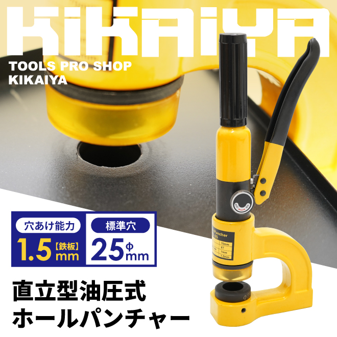 - ホールパンチャー 直立型 油圧 パンチャー 標準穴φ25mm 切断能力6t 穴あけ能力 鉄板1.5mm KIKAIYA