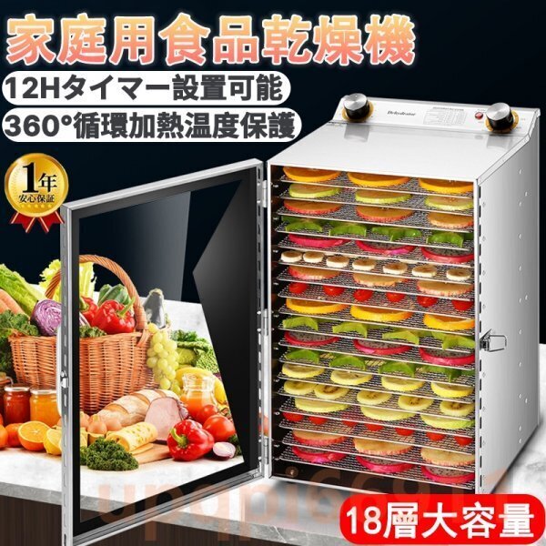 - 食品乾燥機 フードドライヤー 家庭用 業務用 ドライフルーツ ドライフード ステンレス鋼 食品脱水機 0〜12時間調節 360°循環加熱 18層