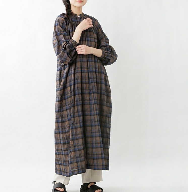 - NICO,nicholson&nicholson/ニコルソン&ニコルソン/新品タグ付き/DRACENA/ドラセナ/クリンクルコットンギャザーロングワンピース/ブラウン